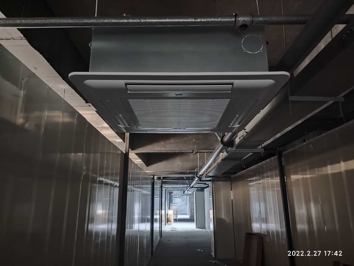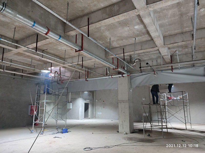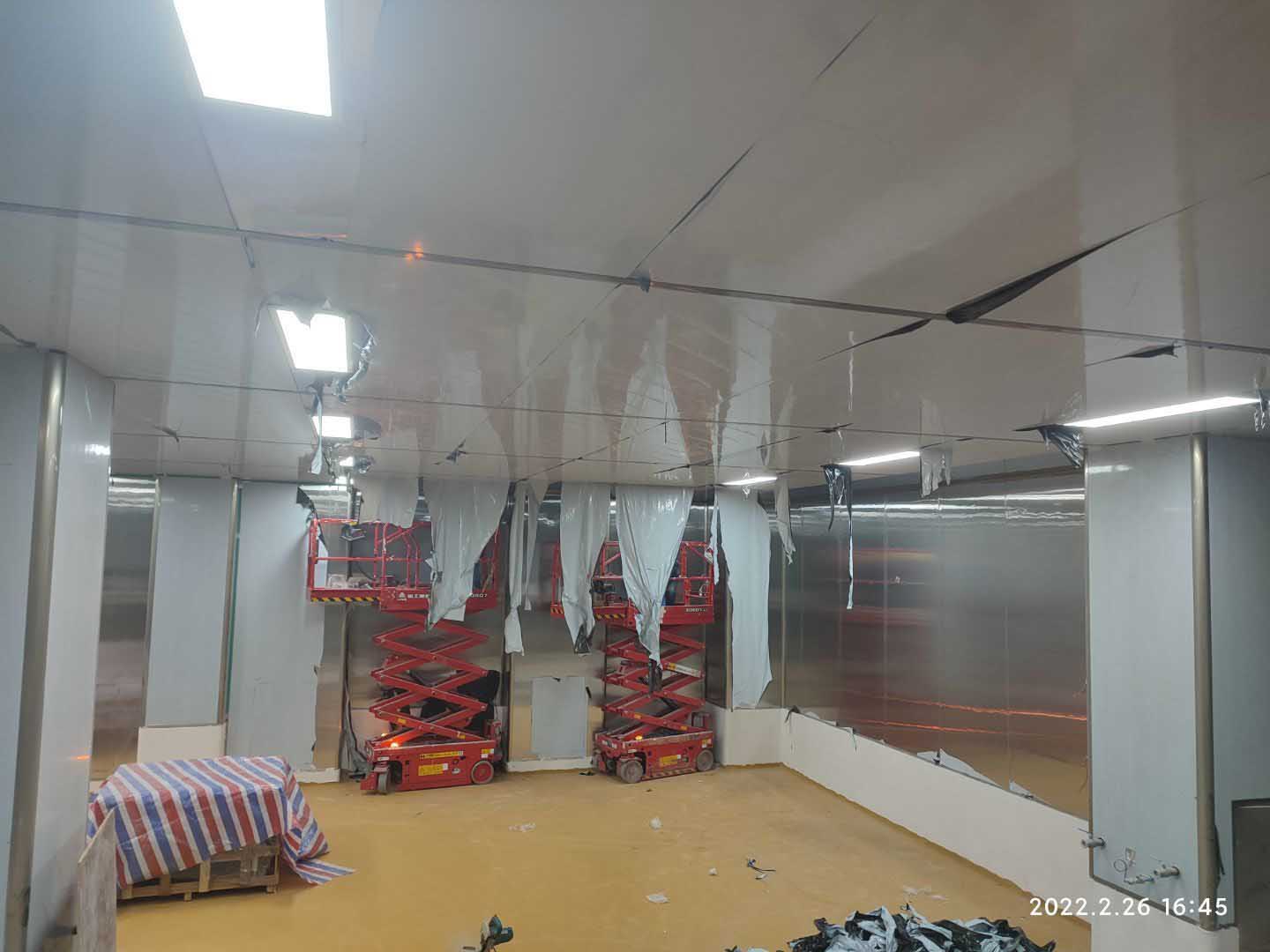 1,彩鋼板吊頂完成90% 2,圓弧完成40% 3,空調(diào)設(shè)備末端水管配管完成95% 4,照明插座配管穿線完成75%