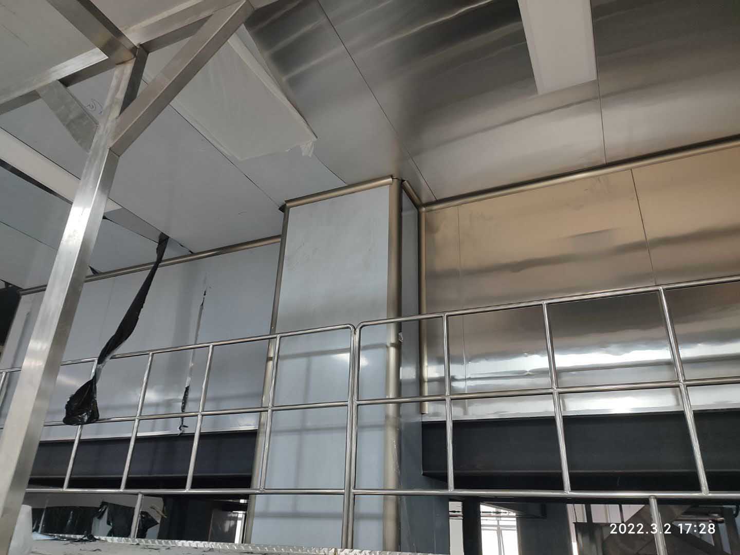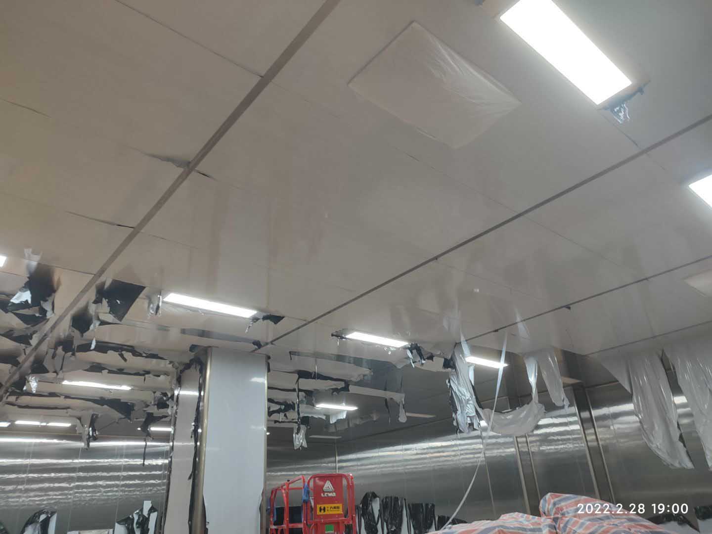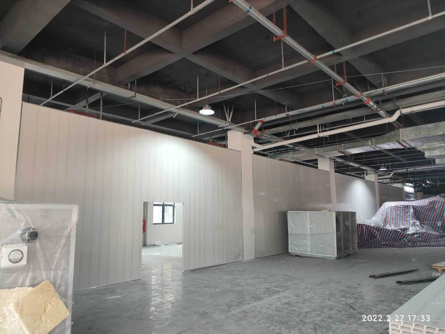 1,彩鋼板吊頂完成85% 2,組空配管完成30% 3,照明插座布線完成65%,燈具安裝完成40% 4,高效和回風(fēng)末端風(fēng)管尺寸量取完成。