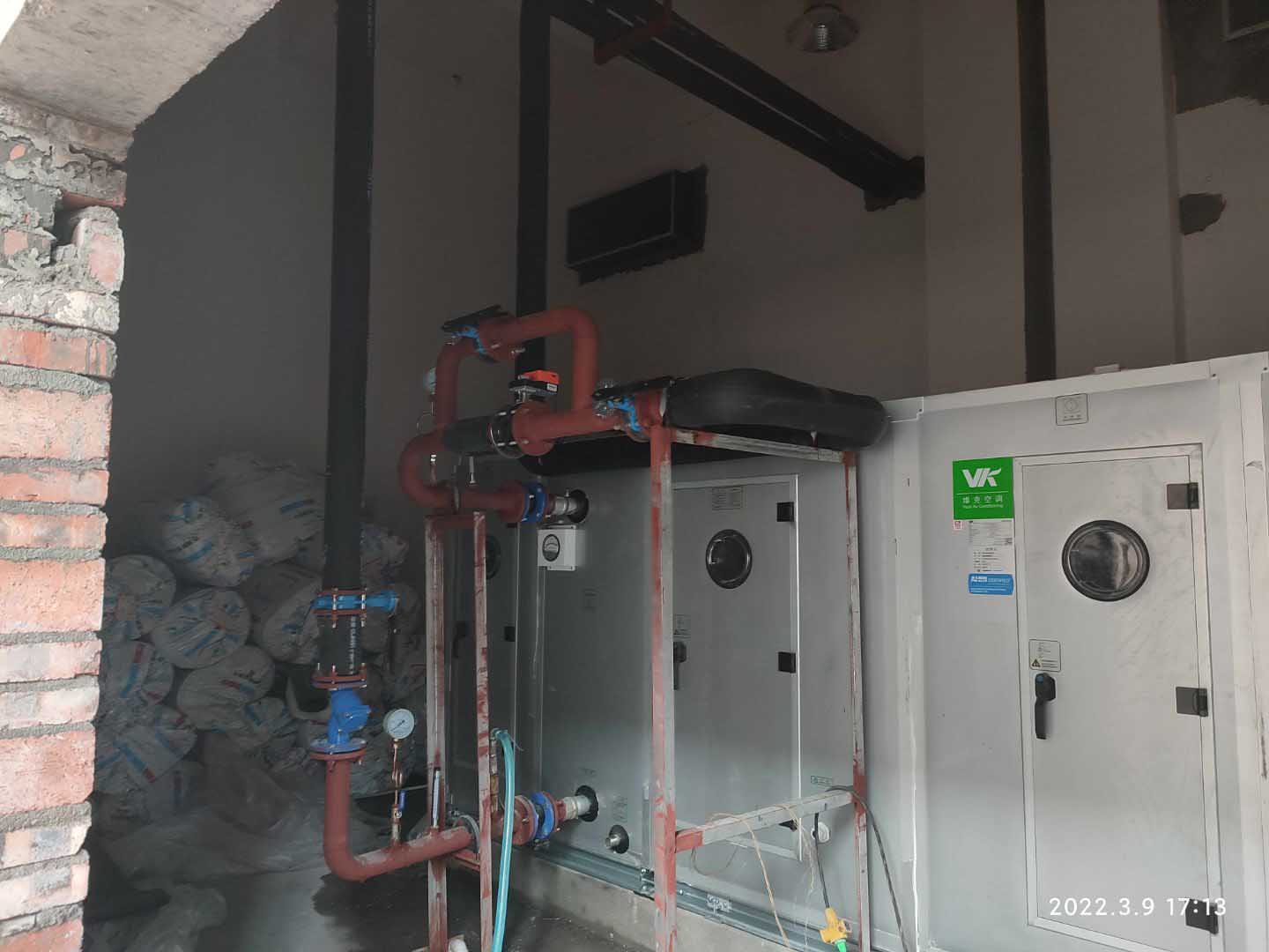 1,彩鋼板隔墻及吊頂完成95% 2,成品門安裝完成20% 3,空調(diào)模塊機(jī)組吊裝就位,配管完成30% 4,百葉風(fēng)口安裝完成70%
