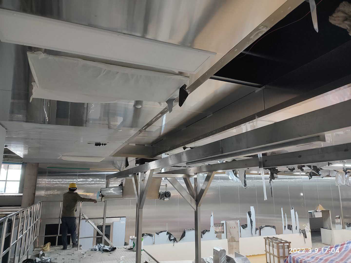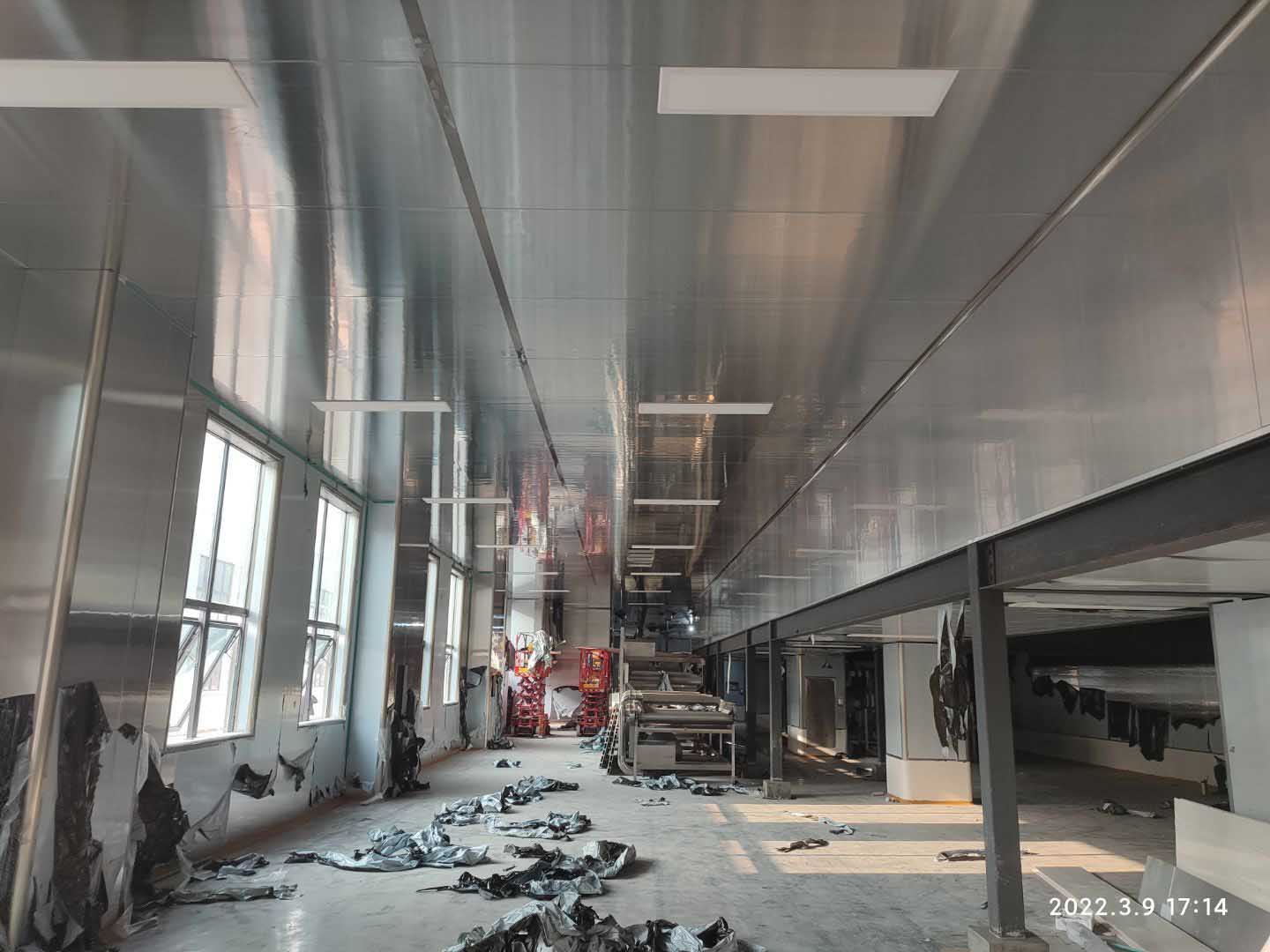 1,彩鋼板工程整體完成90%; 2,照明完成92%,插座完成90%; 3,空調(diào)末端風(fēng)管安裝完成90%,高效濾芯及擴(kuò)散孔板完成80%,1,2號機(jī)組空吹完成。