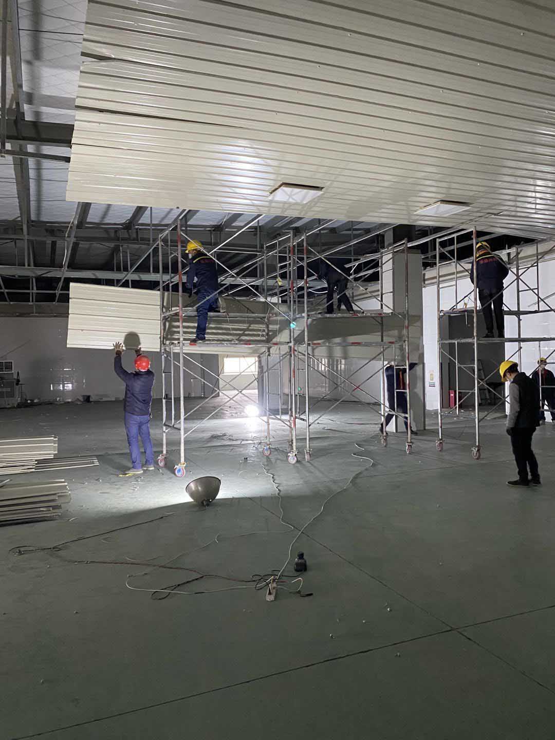 1、三車間環氧地坪超耐磨面層施工完成、二車間增加環氧地坪工程量打磨和底涂施工; 2、增項彩鋼隔墻板施工、門安裝; 3、風機電源接駁、排氣扇波紋管更換安裝; 4、土建擋水墻、門洞貼磚勾縫
