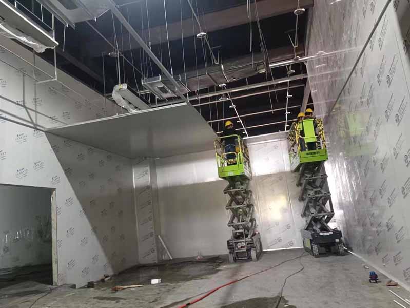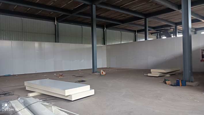1.凍庫墻板安裝 2.凍庫板頂板安裝。 3.鋼構夾層下料,施工