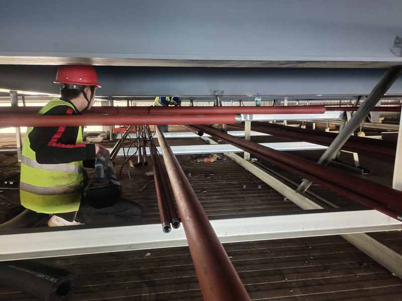 1、裝修水電安裝施工作業 2、蒸發冷設備機組管道焊接作業。 3、制冷管道保溫 4、圓弧施作業.鋼制門安裝 5、管道保溫作業。 6、無縫鋼管陪管 7、設備機組配線。 8、觀察窗安裝完成 9、凍庫控制電柜安裝。 10、平臺設備動力電施工 11、速凍庫2鋁格柵施工作業 12、新風系統安裝完成95%) 13、衛生打掃